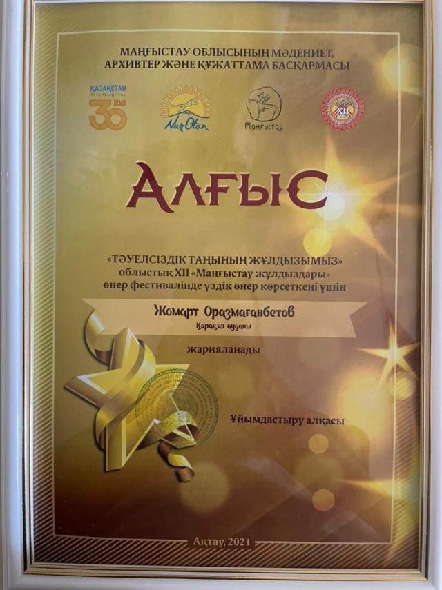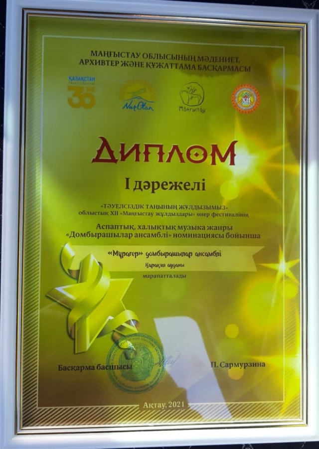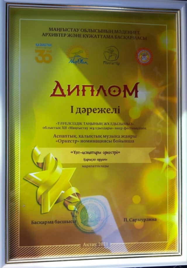 Қазылар алқасының шешімімен «Оркестр номинациясы» бойынша -”Жетібай сазы” фольклорлық ансамблі I-орын.