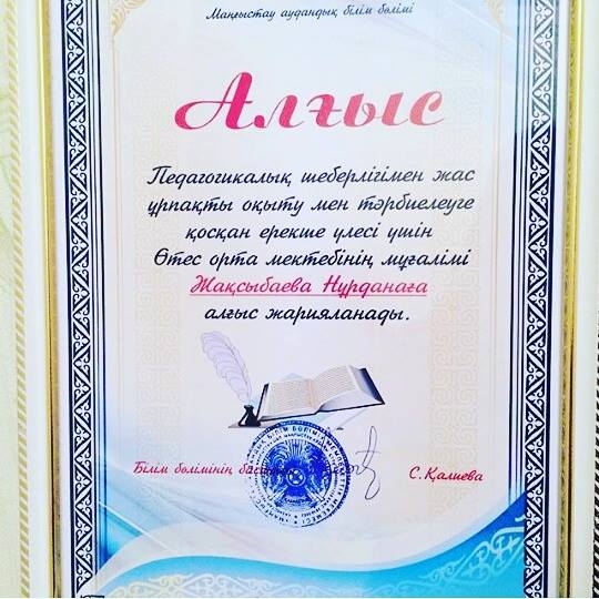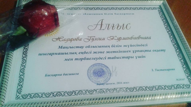 Ұстаздар күніне орай ұйымдастырылған Маңғыстау Аудандық Білім Бөлімінің салтанатты жиынында мектебіміздің ардагер ұстаздары Ақмұрат ағай жəне Несіп,Ұлмекен апайларға құрмет көрсетілді.Дəл осы салтанатты жиында мектебіміздің директордың тəрбие ісі жөніндегі орынбасары Надирова Гулсим Маңғыстау облыстық білім басқармасының "Алғысымен" жəне география пəні мұғалімі Жақсыбаева Нұрдана Маңғыстау Аудандық Білім Бөлімінің "Алғысымен" марапатталды.Құттықтаймыз!