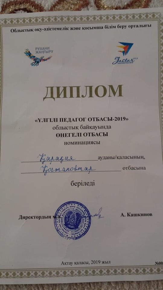 "Рухани жаңғыру" бағдарламасы аясында 2019 жылы 26 қыркүйекте өткен облыстық үлгілі педагог отбасылар байқауына қатысқан, Бостан ауылы, Қарақұдық орта мектебінің Қосжановтар отбасын "Өнегелі отбасы" номинациясымен құттықтаймыз. Бауыржан-Айгерім сіздерге және отбасыңызға денсаулық пен қуаныш, амандық пен бақыт тілейміз.