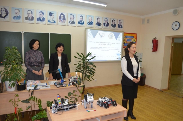 робототехникадан факультатив жетекшілері Г.Тлепиева мен С.Даукиев іс-тәжірибелерін таныстырып, шебер класс